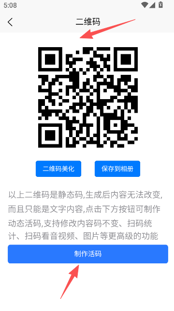 3、此时二维码已制作完成,用户可以选择保存至本地,或直接分享发布,供他人扫描使用。