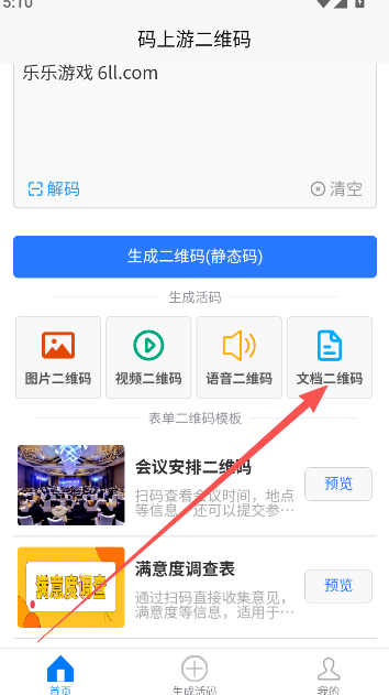 1、制作问卷二维码主要利用软件内的文档二维码生成功能。