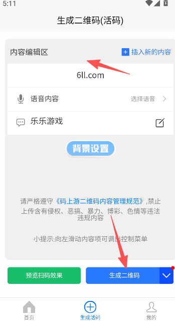 1、打开生成器首页,无需登录,直接点击二维码内容生成区域,输入所需的文字内容。