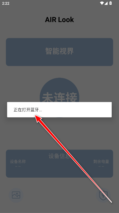 1.启动AIRLook应用,点击界面显示的未连接提示。