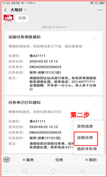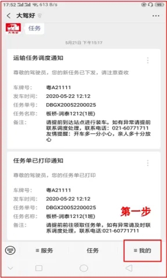 1、进入“我的”页面,找到并点击“运输任务”。