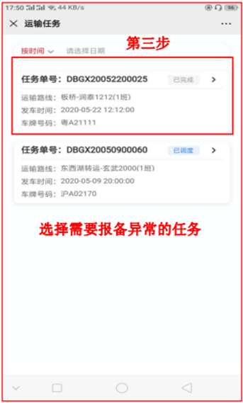 2、在任务列表中选择需要报备异常的具体任务。