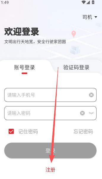 1、下载安装应用后,点击界面下方的注册按钮。