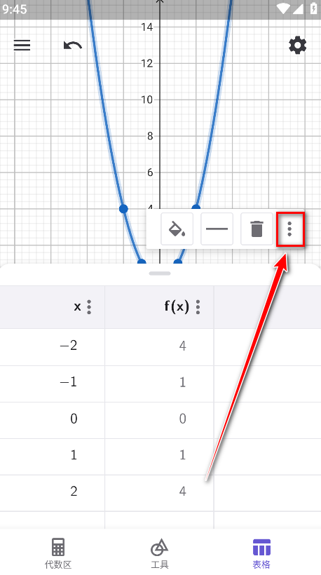 7. 点击函数名称右侧的三个小点,从菜单中选择数值表功能。