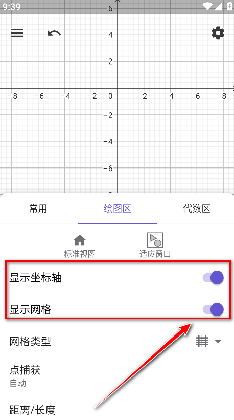 5. 在绘图区设置中,可开启显示坐标轴、显示网格、启用网格吸附等功能,使绘图过程更加精确方便。