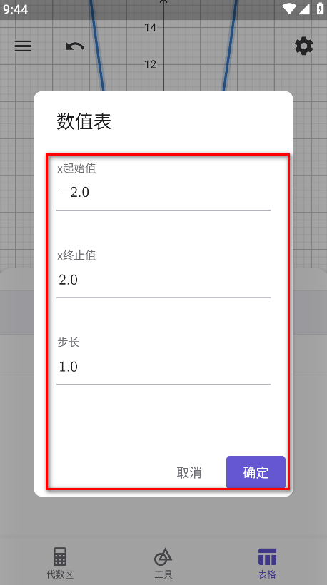 4. 利用表格功能,用户可为指定函数创建对应的数值表格,辅助完成图像绘制。