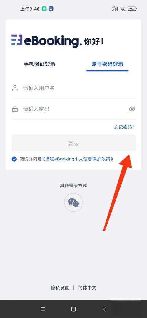 选择账号密码登录选项,依次输入用户名、密码,如下图,点击登录按钮即可完成操作