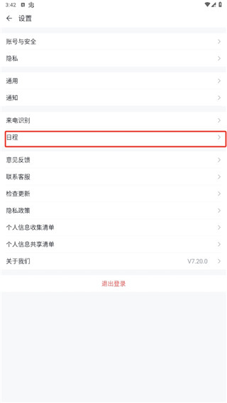进入设置页面后,找到日程设置选项并点击;