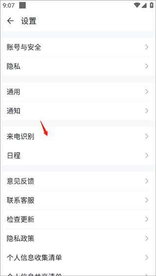 2、在设置列表里找到来电识别选项,点击进入对应页面;