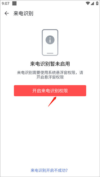 3、点击页面内的开启来电识别权限选项;