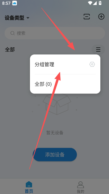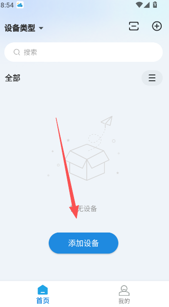 2、注册成功后自动登录,在首页进行设备连接与添加。