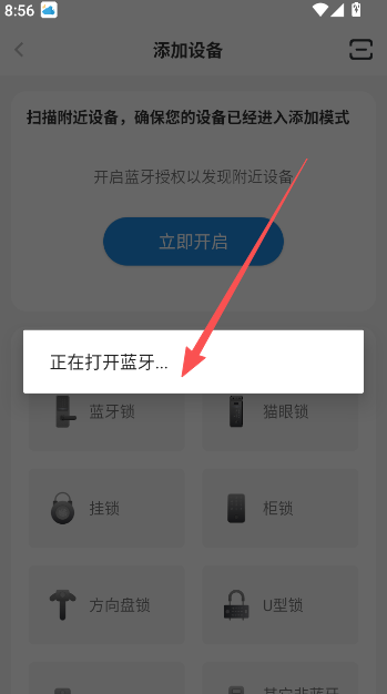 3、开启手机蓝牙权限,搜索并匹配智能设备进行添加。