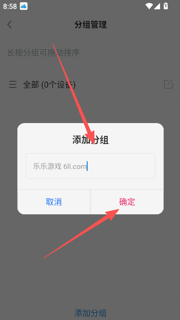 3、输入分组名称,点击确定即可完成添加。