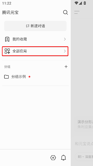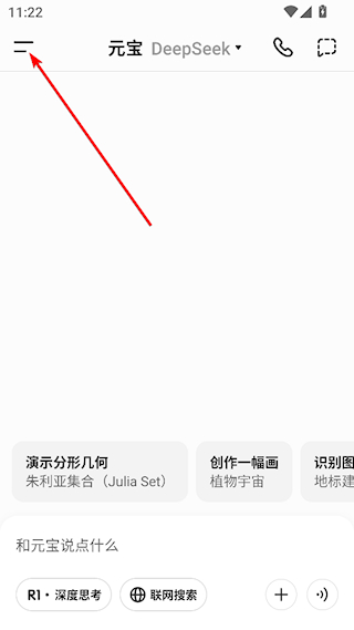1、启动腾讯元宝应用,点击界面左上角的菜单按钮。