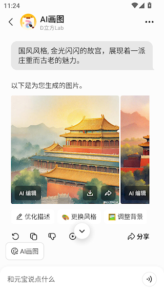 4、输入对画面的文字描述,发送后系统即可开始生成图片。