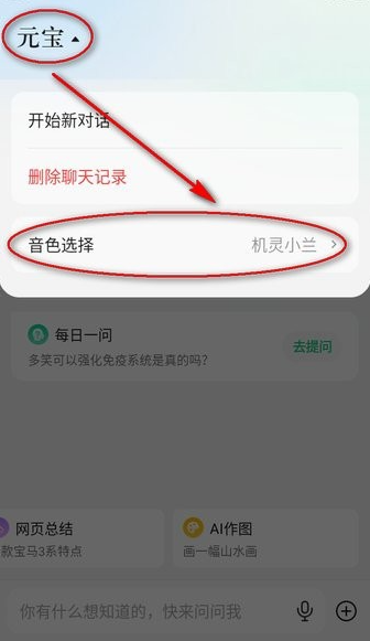1、点击左上角的“元宝”图标,在下拉出现的菜单中点击“音色选择”。