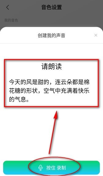 3、然后按住录音按钮,将界面提示的“请朗读”句子完整读一遍即可完成设置。