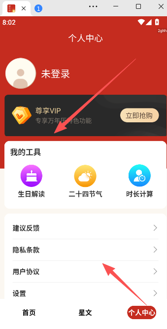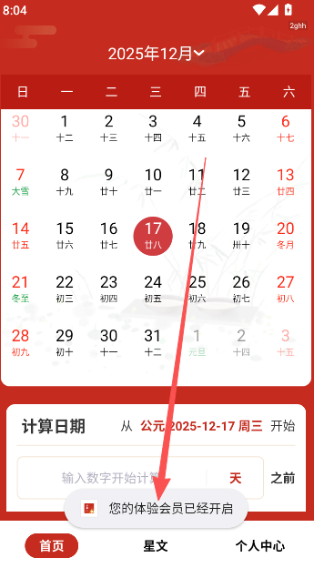 3、在个人中心,还提供生日解读、二十四节气查询、时长计算等附加功能,帮助解读与生活紧密相关的事项。