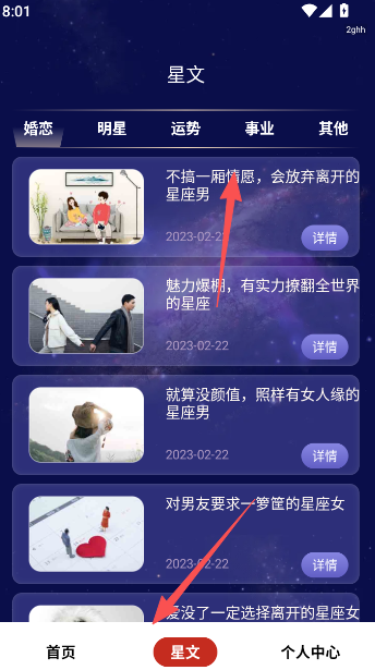 2、星文板块以资讯内容为核心,通过图文结合的方式为用户提供运势测算。