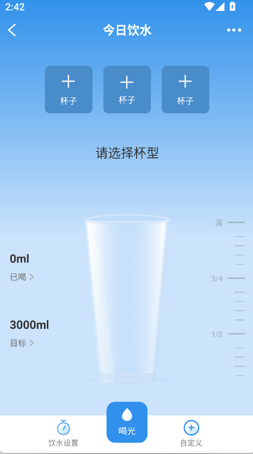 3、你可以在每日计划板块自定义设置每日饮水目标,每次喝水后手动记录饮水量,就能实时查看目标完成进度,慢慢养成规律饮水的健康习惯;