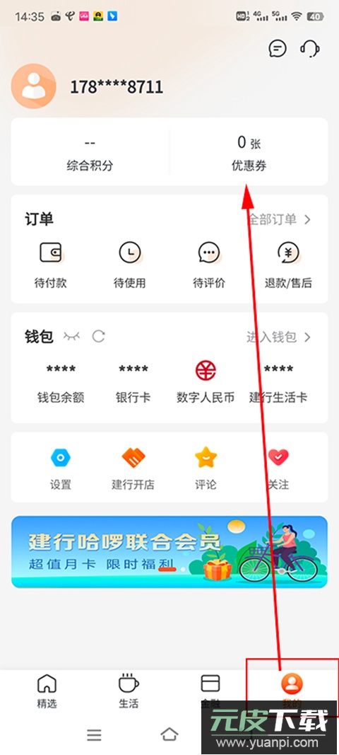 1、打开应用并登录,进入“我的”页面,点击“优惠券”入口。