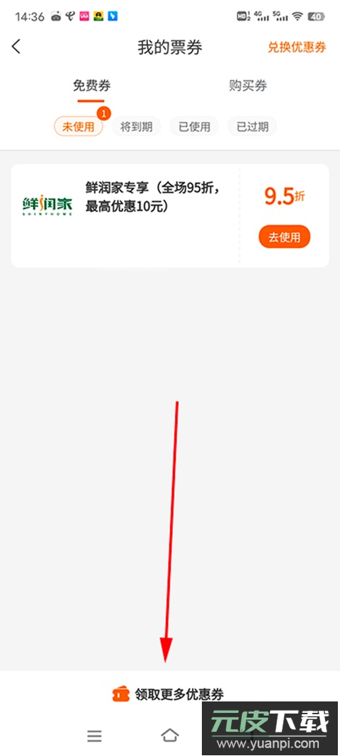 2、浏览当前持有的优惠券,也可点击领取更多新券。