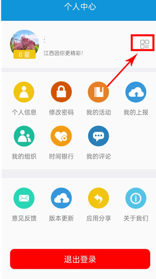 2、进入个人页面,在个人中心区域头像右侧可见二维码图标;