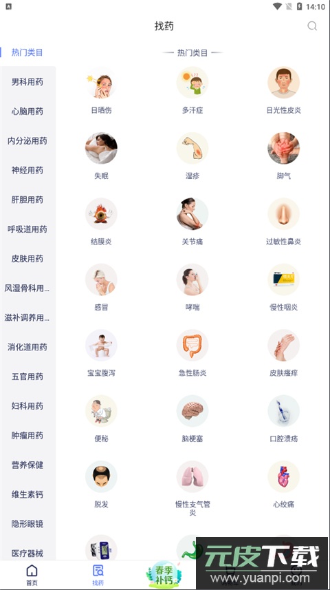5、如需浏览更多药品,可以进入“找药”板块,这里按照疾病类型和药品类别进行了详细分类,便于用户精准查找。