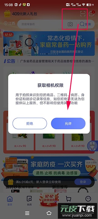 4、若是再次购买同一款药品,推荐使用应用的“扫一扫”或拍照识别功能;首次使用时系统会请求相机权限,点击允许即可;