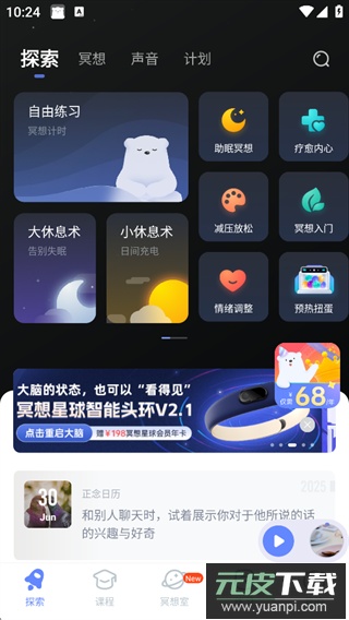冥想星球应用是一个专注于心理健康服务的专业平台,它为用户提供直接的冥想练习支持,能够有效帮助调节睡眠质量、缓解焦虑情绪及其他身心健康问题。该平台功能设计全面,致力于让每位使用者获得优质的冥想体验,如果需要相关服务,现在就可以下载尝试。