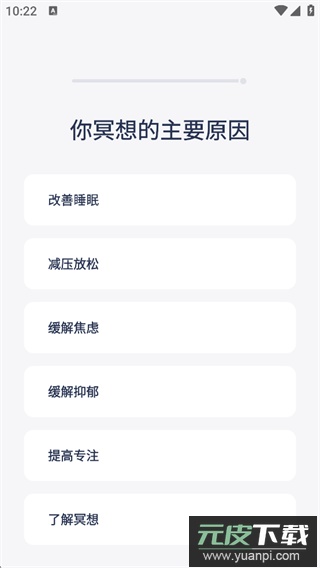1. 打开软件后,首先选择你进行冥想的主要原因。