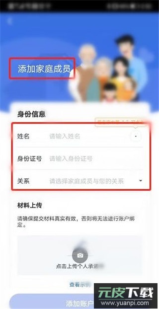 6、选好绑定方式后按提示填写家庭成员相关信息,提交对应证明材料后就能完成绑定;