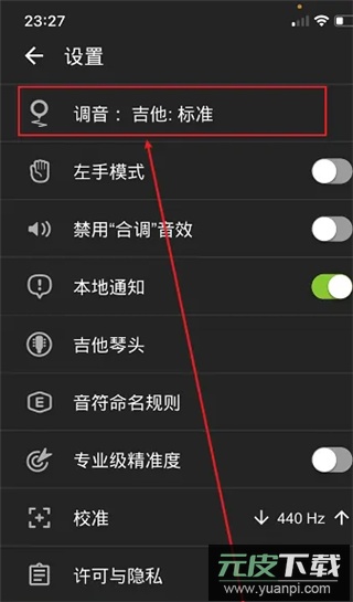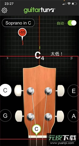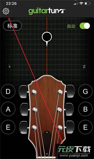 5、根据屏幕上琴弦的指示,将其调整到准确音高。