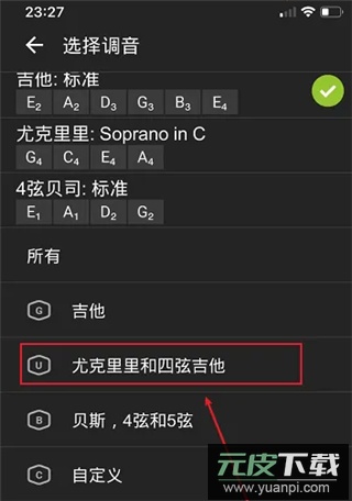 3、点击【尤克里里和四弦吉他】进行对应乐器调音。