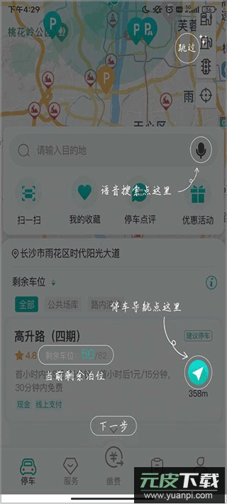 1、可通过语音搜索停车位,并查看当前剩余车位数量。