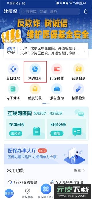 1、安装并打开应用后,在首页找到“预约挂号”入口。