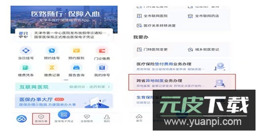1、进入应用后点击医保办事板块,找到跨省异地就医业务办理功能。