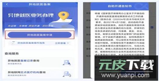 2、先阅读并同意备案承诺书,点击异地就医备案申请,仔细查看自助开通告知书后确认已阅并同意。