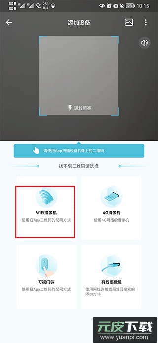 2、使用手机直接扫描设备机身上的二维码完成绑定;若无法扫描,可选择其他连接方式,例如WiFi摄像机选项;