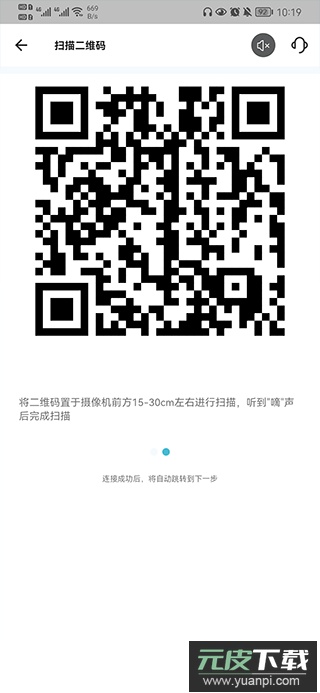 4、将手机连接至WiFi网络,屏幕将显示一个二维码;将该二维码置于摄像头前方让其扫描,即可成功完成绑定。
