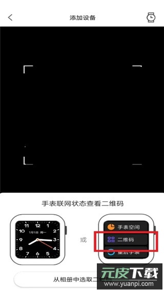 进入添加页面后,按照提示打开手表屏幕显示二维码,使用手机扫码进行登记。