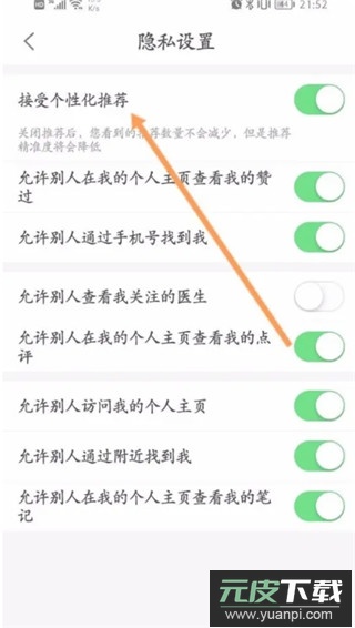 第四步,在隐私设置页面中,找到“接受个性化推荐”功能,点击开启即可完成设置。