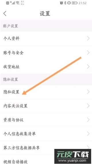 第三步,进入设置界面后,选择“隐私设置”选项。