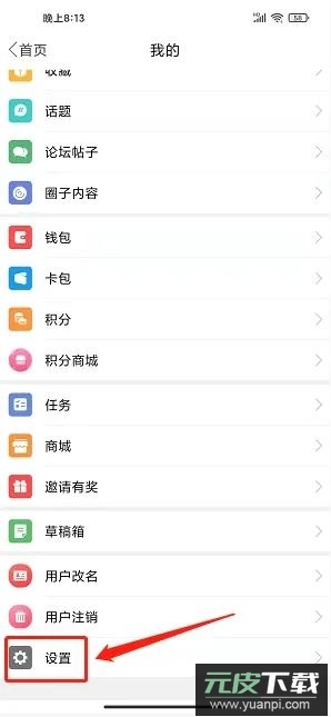 进入个人中心页面后,选择【设置】选项。