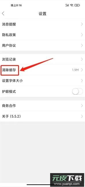 在设置界面中,点击【清除缓存】功能。
