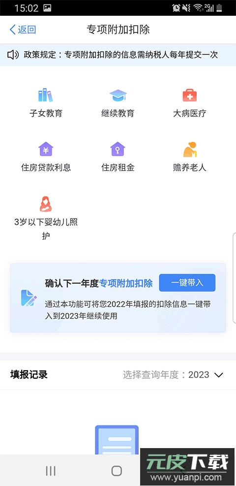 1. 打开应用,选择确认2023年度专项附加扣除的入口;