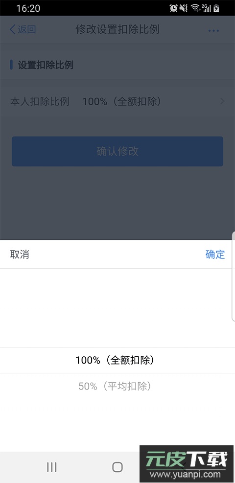 8. 设定扣除比例,根据实际情况选择全额扣除或平均分摊;