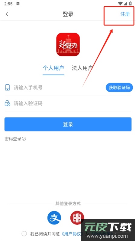 3、在登录页点击右上角“注册”按钮;