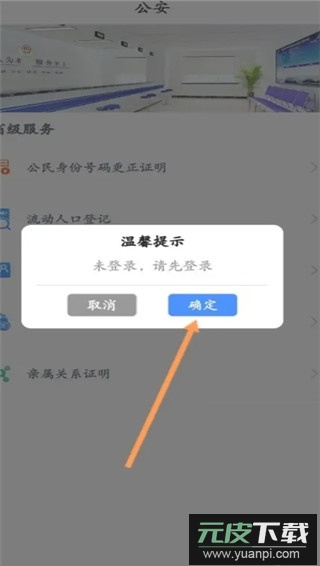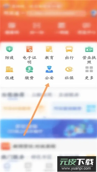 首先打开应用程序,点击界面中的公安服务板块