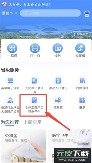 第一步:启动app后,在主页找到并点击个体工商户全程电子化入口